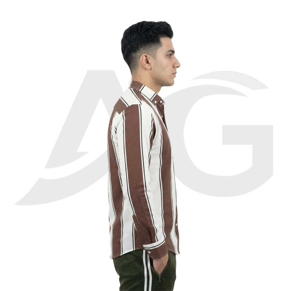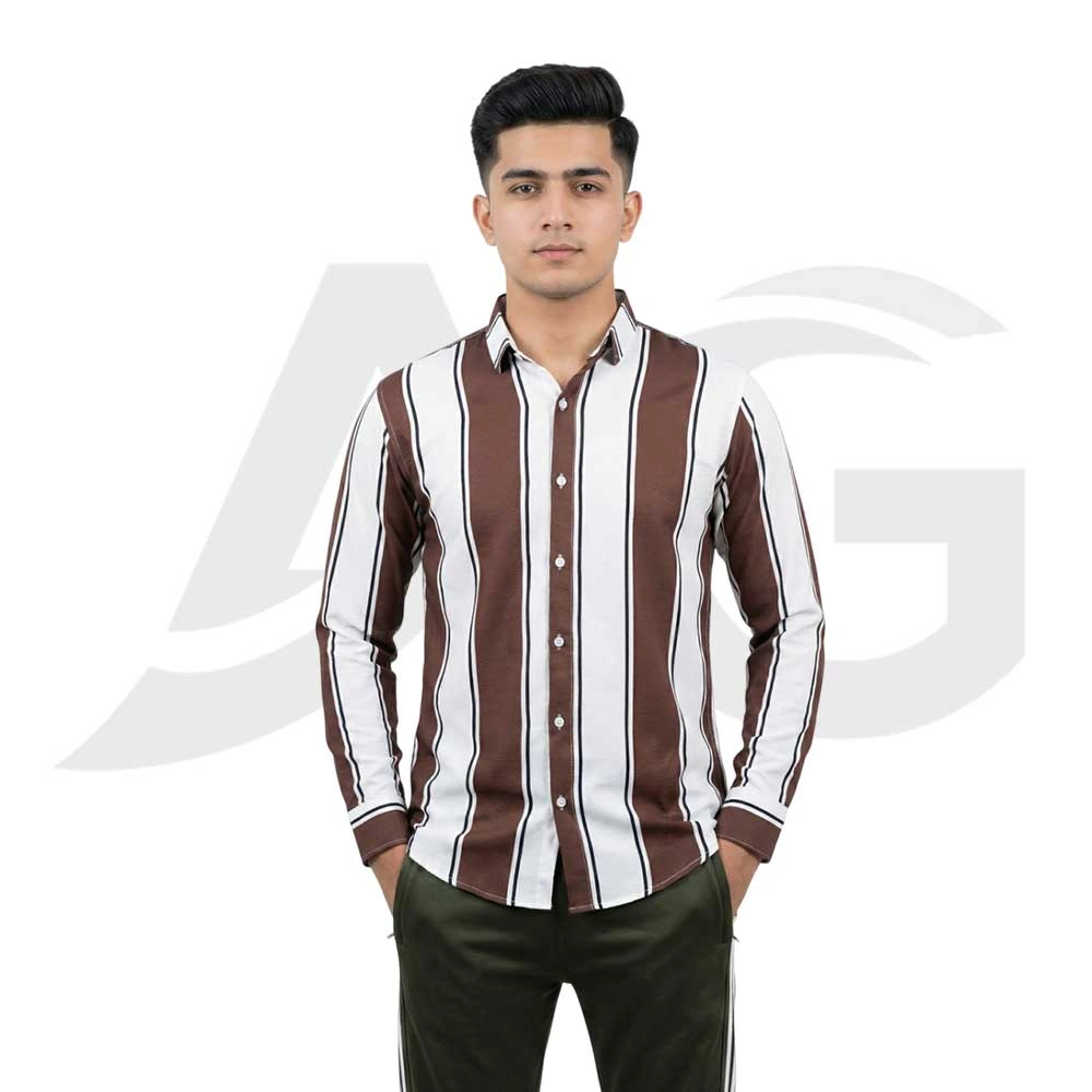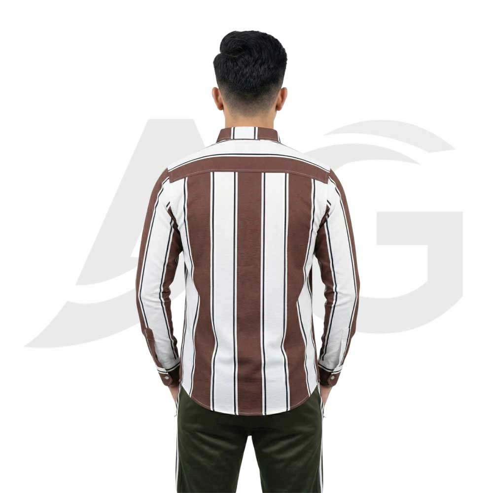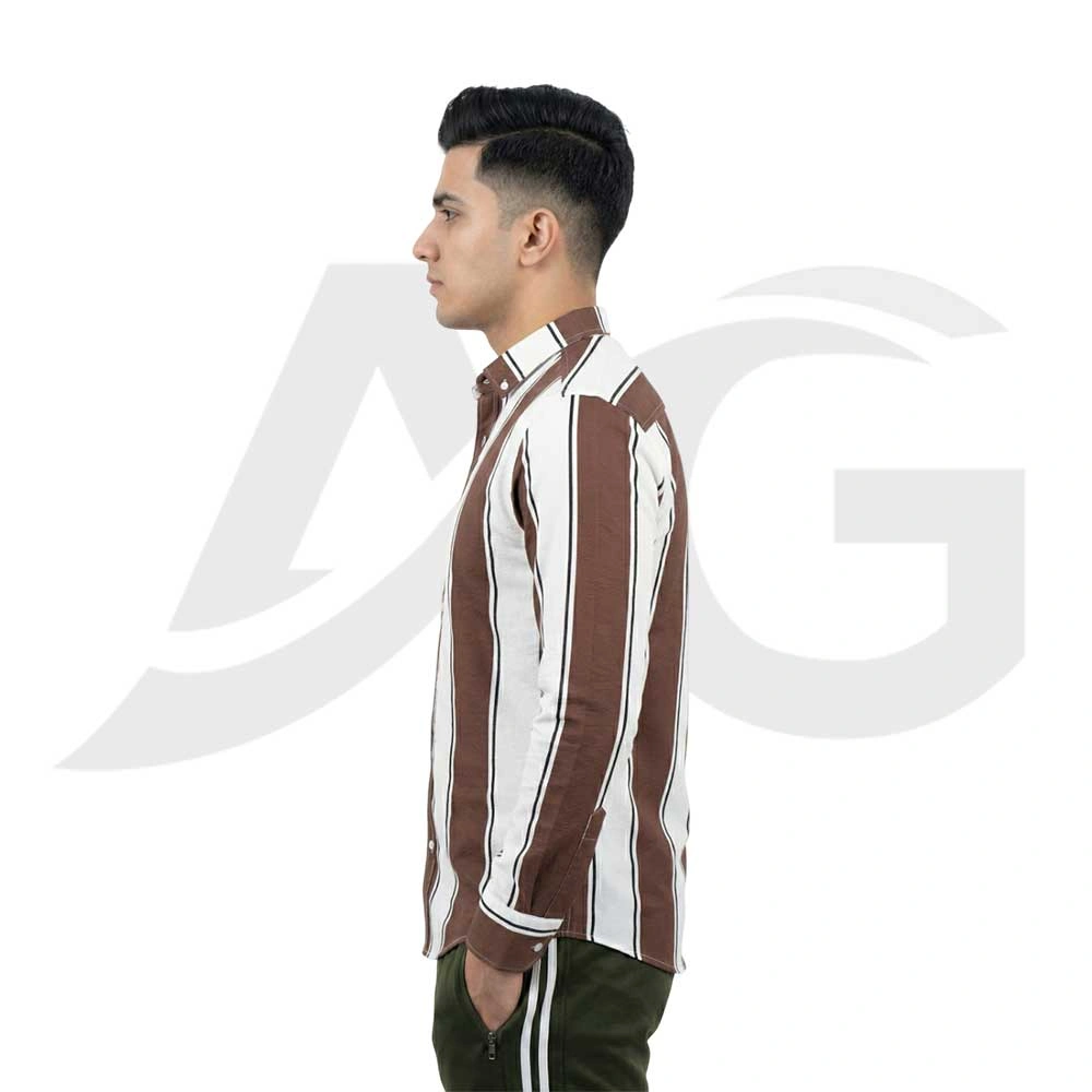 The Men’s Brown & White Striped Casual Shirt offers a classic, sharp look combined with advanced fabric technology, perfect for smart-casual wearing.